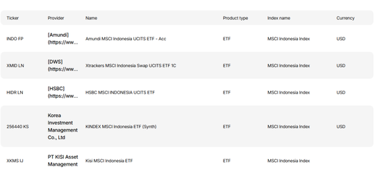 明晟公司管网显示,跟踪MSCI印尼指数的ETF基金有5只,但没有公布具体规模。